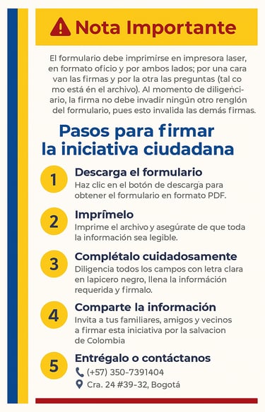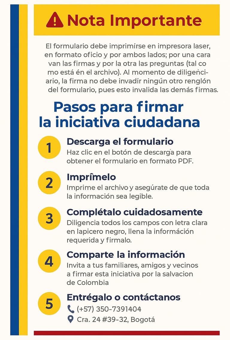 Invita a tus familiares, amigos y vecinos a firmar esta iniciativa por la salvación de Colombia.